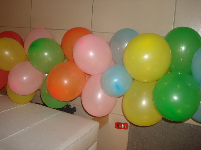 Toujours avec des entortillements on peut créer des guiralnde de ballons assez denses.